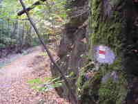 Mikor elértem az elágazáshoz, a szemközti fán megpillantottam egy görbülő piros nyilat, melyet úgy értelmeztem, hogy az emelkedő úton, balra kellett volna indulni.