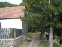 Átkelve a patak hídján, balra egy oszlopon jel. Az első épület előtt kell balra fordulni, az ellenkező irányból érkezőnek is van jel az oszlop másik oldalán!