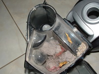 Ezt a push gombot megnyomod, és lejön a tartály oldala, egy elegáns mozdulattal a nagykukába bezúdítod, utána már csak elöblíted vízzel ésannyi.:p Ami szutyit esetleg látsz, az a belsejében van, kívülről makulátlan tiszta, semmi por nem szivárog ki, nagyon jól zár....áttetsző, ezért átlátszik a képen. Így lejön az oldala, a belső része van most felfelé, az szutyis.