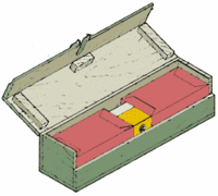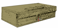 Az akna gyakorlatilag egy faláda, deszkából, zsanérokon mozgó fedővel. A láda belsejében volt a fő töltet, ami parafin-papírba csomagolt robbanóanyag-préstestekből állt (az ábrán vörös színnel kiemelve) és egy köztes töltettel volt áthidalva, ami egy trotil préstestből állt, amelyben fészket fúrtak a MUV gyújtó számára (sárga színnel kiemelve).