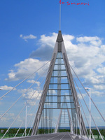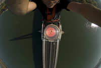Halihó! a körülményekről: a híd, út-szintjétől 111 méter magasan van az a lámpa a legtetején, ami a repülőknek világít. (A fölső "placc" 99,7m. + az "árbócrúd"). Nem fújt a szél, csak egy kicsit, viszont baromira lengett & rezgett a vége a forgalomtól, főleg, amikor kamion vagy busz ment el alul. Lifttel lehet fölmenni, (3 ember fér be+ a fölszerelésem, vittem mindent & később itthon kiderült, hogy nem volt fölösleges) az elsővel a 29. emeletre, ez a lift ferdén megy fölfele, majd egy másikkal majdnem a tetőre. Ezután 3 szintet lépcsőzni kell, aztán vaslétrán a kilátórészre. Ez a hely kb. 2x2 méter, közepén a zászlórúddal. 150 cm magas a mellvéd. Sansz nincs rá onnan panózni. Az oszlop 50cm átmérőjű, vége felé karcsúsodik & kitakar mindent. (Erre számítottam.) Kézből csináltam. A D200-assal+10.5mm Nikkor, 100 as ISO, 8 as blende, 640-del, a Napra külön egy lövés 1000-del. /Sajna kézből a brackettelés még nem megy! / :-)) Szokásomhoz híven, mint mindig, most is klumpában voltam, & vittem kétpontos beülőt magammal, de adtak egy négypontosat, a bizti kedvéért. Fönn a gépészkedés közben eltekertem az élességet, amikor a pesti oldalt fotóztam, szerencsére normál képeket is csináltam & abból tudtam javítani a panót. A legizgibb a lefele fotózás volt, mert a csúcs fölé kellett nyúlnom legalább 50 cm-rel, hogy biztosan éles legyen a lámpa. Ezért aztán úgy kellett állnom, hogy az oszlop vége a csípőmnél legyen, na az ember, aki fölkísért, ekkor elfordult, azt mondta nem is akarja látni, hogy hogy csinálom. (Az eredményt ma megnézte & nem érti miért nem látszom ott a képen.) Hát ennyi, így készült. Benike, remélem elég részletes volt? Bocs a hosszúságért & ha vkinek van még vmilyen kérdése, ne tartsa vissza magátl.