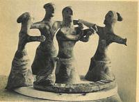 The ritual encircling dance, whether in procession with measured tread or in the form of a dance step -- and both are varieties of what is essentially the same thing -- is perhaps the commonest kind of sacred dance. Its occurrence is worldwide. The object around which it takes place was in most cases, at any rate originally, a sacred one: an idol, an altar, a sacrificial victim, a holy tree, or a well. The encirclement was also performed round other things; but in these cases the dance is of another type to which attention will be drawn later." (opening)