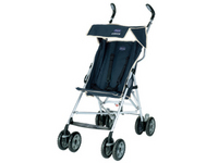 Naptetővel, esővédővel, 5 pontos biztonsági övvel, 2 fokozatban dönthető háttámlával felszerelt, esernyőre csukható babakocsi.