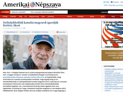 Kertész úr nem élt ő rosszul Magyarországon. Hogy egy volt MSZP-s parlamenti képviselőt idézzünk: ő az ország egyik megbecsült, sokszorosan kitüntetett személyisége volt, díszpolgár, eminens magyarnak tudta-ismerte őt a világ. Az Amerikai Népszavában megjelent cikke traumatikus hatást keltett, lelki cunamiként köpte szembe hazánkat és az egész magyar nemzetet. Amit ő leírt ott, az minősíthetetlen; egyszeri és visszafordíthatatlan vallomás kétezer éves történelmünkről, nemzeti karakterünkről, kultúránkról, hagyományainkról. Egy ilyen intoleráns embernek, mint Kertész úr, nincs helye a mi multikulturális kanadai társadalmunkban”.