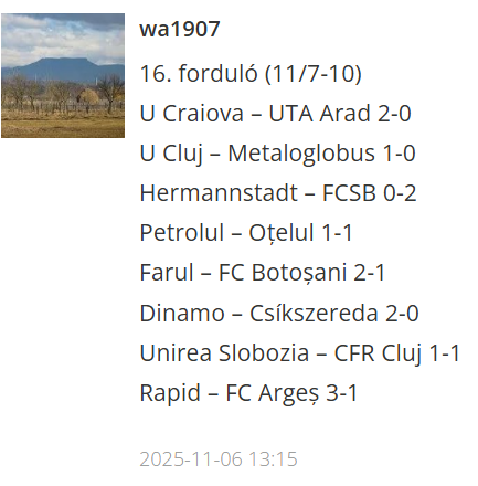 A 16. fordulóban szerzett pontok: 1. Bzzzzz07 24p 1. zsolyika 24p 3. orok meggyszin 23p 4. wa1907 22p 5. laszloka7 18p 6. luisharcsa 11p 7. bendeguz90 7p