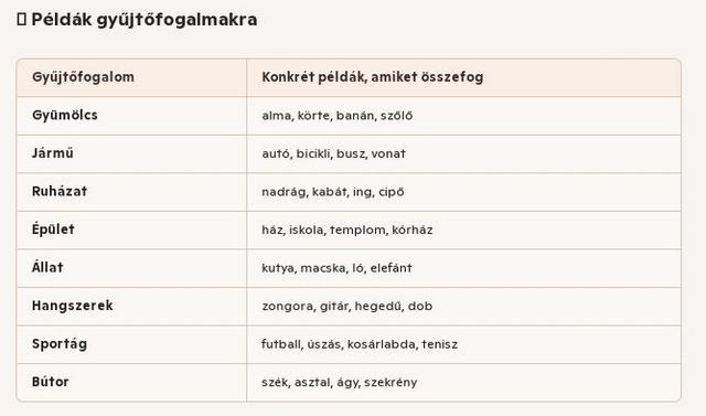 A gyűjtőfogalmak segítenek abban, hogy ne kelljen minden egyes elemet külön megnevezni, hanem egyetlen szóval utalhassunk egy egész csoportra. Ez különösen hasznos a tanulásban, kommunikációban és a logikai rendszerezésben.