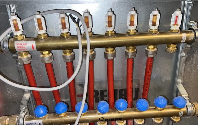 WILO Yonos PICO 25/1-6 maxon megy a padlófűtés funkcióval. Alaphelyzetben fent van az átfolyásmérő piros jelzője és ha a kazántól jön a víz akkor lefele mozdul el de minimálisat kb a fél liter/perces értékig körönként. A víz kering de max 3liter/perc ha a 6db kört nézzük összesen.. Ha a keverőszelepet 1es állásra állítom akkor hallani, hogy alulról a padlófűtéscső visszatérő ágaitól rendesen megindul a víz és az átfolyásmérők lefele szinte kiakadnak 3-4liter/perc-re körönként.