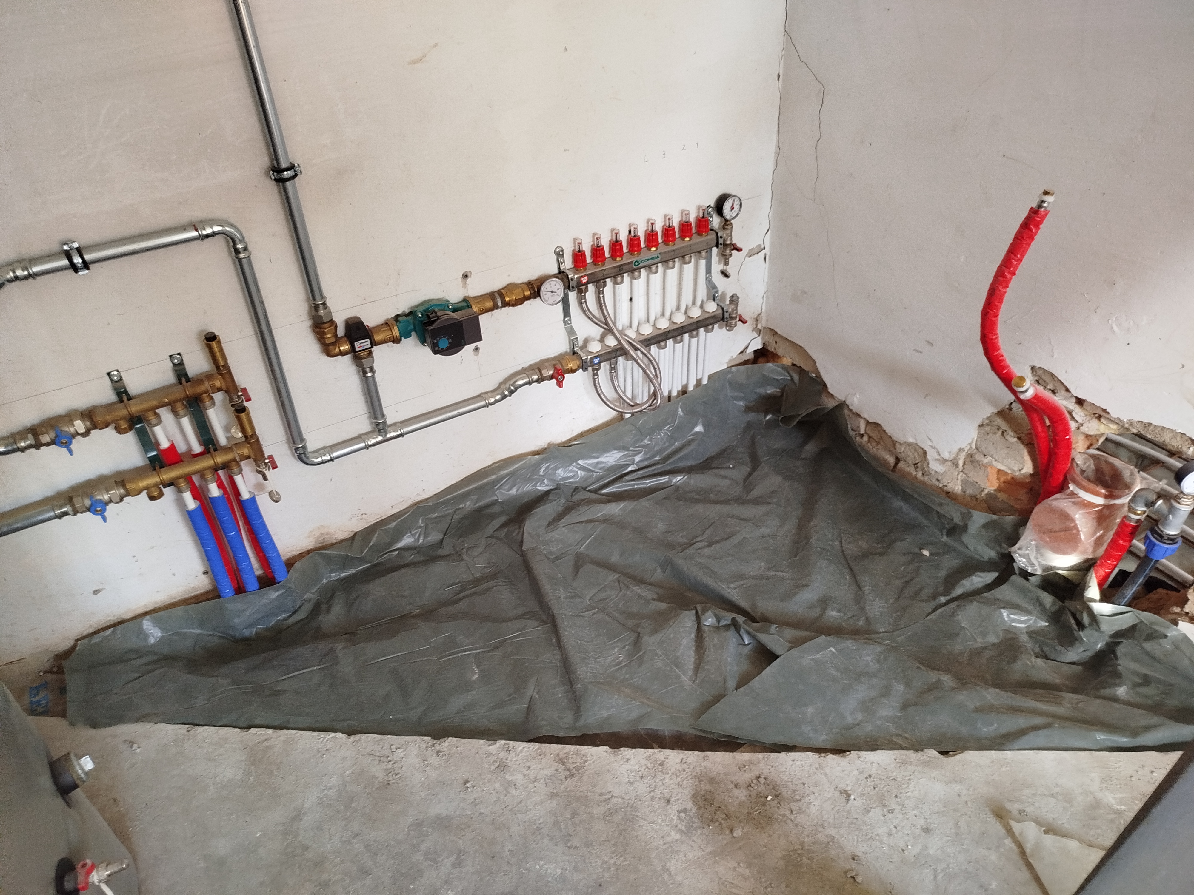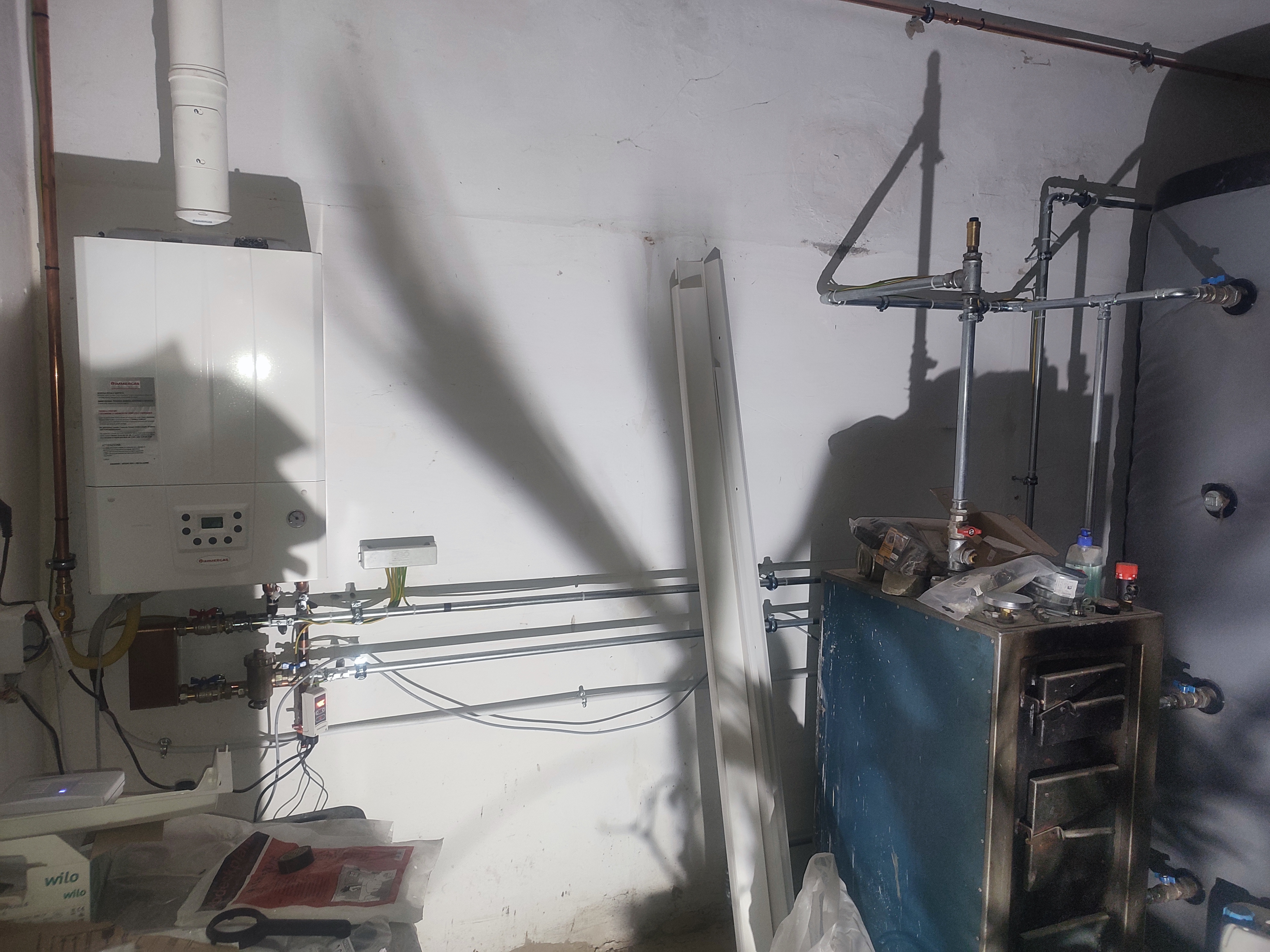 A kazán a helyiség másik sarkába került onnan lett elvezetve a szekunder kör ami kb 2*6m.