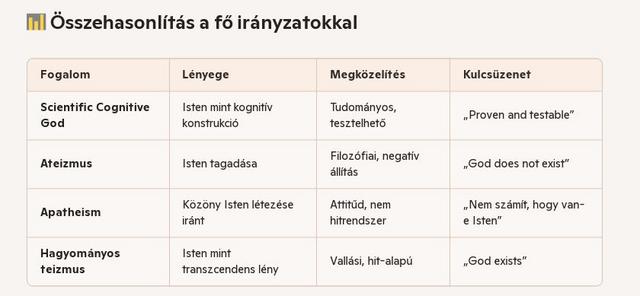 Lényegében a „Tudományos Kognitív Isten” megpróbálja áthidalni a tudományt és a spiritualitást azáltal, hogy az istenséget egy megfigyelhető, adatvezérelt valóságként keretezi újra, amely az univerzum és az emberi elme működésében gyökerezik, túllépve a hagyományos teológiai vitákon.