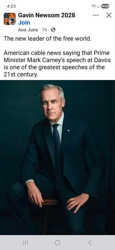 „Öröm és kötelesség számomra, hogy Önökkel lehetek ebben a, Kanada és a világ számára is fordulópontot jelentő pillanatban. Ma a világrend felbomlásáról, egy szép történet végéről és egy brutális valóság kezdetéről fogok beszélni, amelyben a nagyhatalmak közötti geopolitika semmilyen korlátozásnak sincs alávetve.