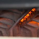 Ha alulról nézünk, megfigyelhetjük a szénégetés folyamatát a tűztér rostélyán keresztül.