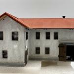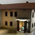 Busch 1904 alap, amiből tényleg csak az alapot tartottam meg. A vázat és a nyílászárókat. A tető Auhagen, a lábazat gipsz, vakolat homok ami szürkére lett festve. A garázs és a felső szint egy részének belső berendezését is elkészítettem. Az utóbbi helyiség ablakaira nem kerültek üvegek, így a ritka szövésű függönyön át lehet látni, de félre is húzhatóak a minijelenet jobb megtekintéséhez :)