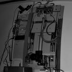 A képen egyébként a kis, bár 230 V-osnak árult, de igen zsúfolt, tipikus relépanelok (az egyiken a világító LED-del) a konnektorok alatt, ill. egyéb helyeken elhelyezett reléket vezérlik csak, mert eleve nem voltam hajlandó azokat az érintésvédelem miatt hálózati feszültségre használni. A tapasztalatok alapján amúgy sem árt még egy védvonal a villámok és túlfeszültségek ellen. : -) A cucc még szerelés alatt volt, már tisztábban néz ki - és a mechanika nem az én érdemem.