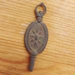 Fellelt állapotban eladó régi bronz zsebóra kulcs. 1800-as évek, leginkább gyűjteménybe ajánlom. 40mm a teljes kulcs mérete, a bedugó rész 9mm hosszú, külső része 2,5 mm és a belső szögletes része 1,5 mm.