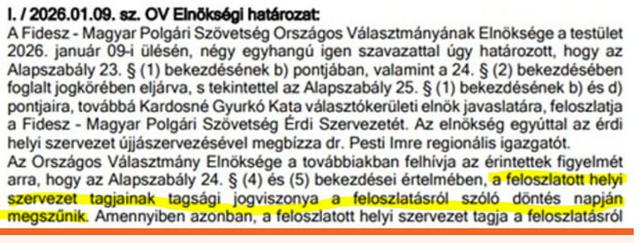 Te magad linkelted be a cikket amiben a határozat szerepel. Eszerint a feloszlatott alapszervezet tagjainak tagsági viszonya is automatikusan megszűnik. Nem Kardosné rugdalta ki őket hanem a négytagú gittegylet élükön Kövérrel.
