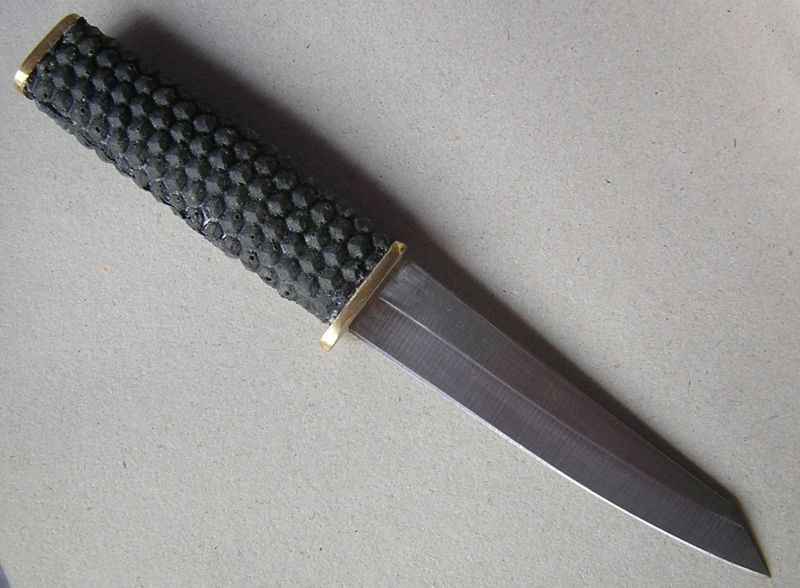 A vizsgálatok szerint a penge, az erre a célra - már máskor, máshol is - bevált TSTM acél, HRC60+. A markolat jó fogású, kitűnő minőségű ördögfióka-bőr borítású. A penge hossza 82 mm, vastagsága 2,8 mm, a markolat hossza 82 mm.