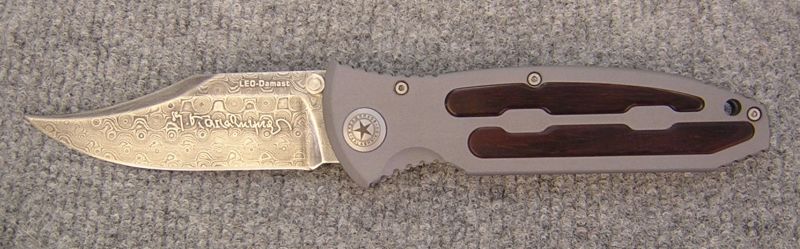 Egy AK karabély és egy Leopard I. tank anyagából, 300 rétegű damaszkuszi acél (Böker Solingen) pengével. Ez a 173/500-as példány. Mint látható, Kalasnyikov altábornagy úr saját aláírásával hitelesítette a projektet.