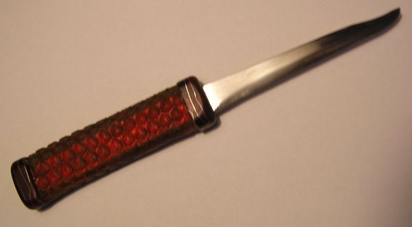 A kés teljes hossza 107 mm, ebből a 2 mm vastag penge 50 mm. Univerzális kiskés, ha valakinek a dilidokija előírta a terápiás mogyoróvessző-farigcsálást, ezzel azt is könnyedén megteheti. A kést a PTA aktív viking tagja Bolthorn Svindli - aki egészen Odin nagyapjáig vezeti vissza a családfáját - a sülnyúl-sagát pedig az északi szél juttatta el a múzeumba.