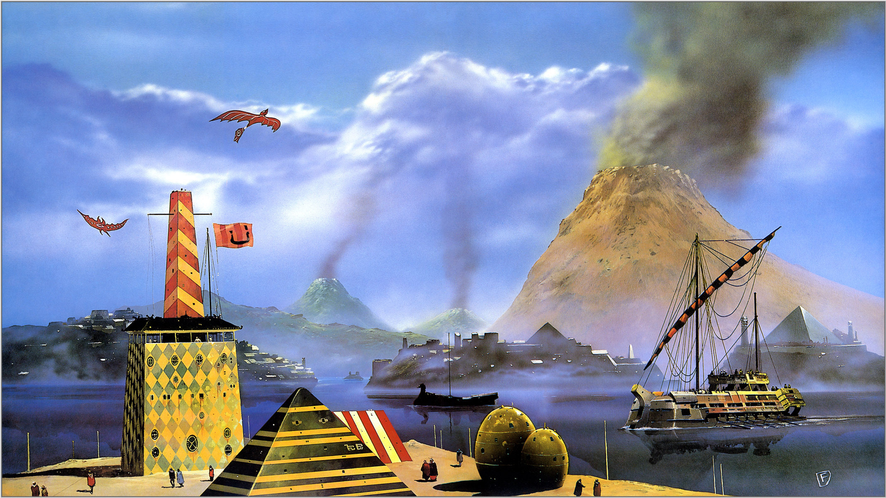 Chris Foss brit művész 1980 körül több képet is festett a pusztulás előtti Atlantiszról.