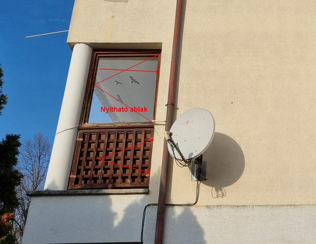 Az eredetileg rácsos korlátra belülről egy falemez van rögzítve és az ablakkal együtt szélfogó funkciót lát el.