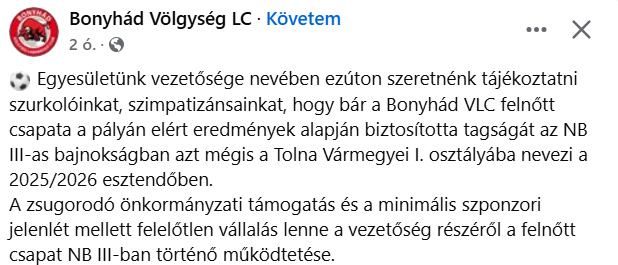 8816 |  | 1. FC Dabas- UFC Szekszárd 1-1 2. ESMTK- Bölcskei SE 1-0 3. Bonyhád VLC- Kakasd SE (péntek!) 2-0 4. Bátaszék SE- Szedres SE 1-1 5. Dunaszentgyörgy SE- Fadd SE 3-1 6. Kölesd SE- Tamási 2009 FC 2-1 7. Majosi SE- Dunaföldvár FC 3-0 8. Kisdorogi FC- Őcsény SK 2-2 9. Teveli SE- Tolnai VFC 0-0 10. Tengelici SE- Madocsa SE 0-1 11. Mórágy SE- Sióagárd SE 1-1 12. Döbröközi KSE- Bonyhád- Börzsöny SE 3-0 13. Nagymányoki SE II.- Iregszemcsei SE 0-1   +1. FTC- MVM Paks 1-0 |