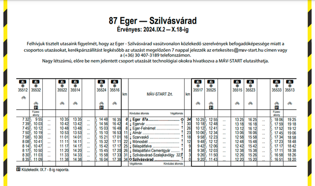 Feltűnő, hogy a csörgős vonatok menetideje lényegesen hosszabb Eger-Szilvásvárad között, a többi vonaté 63 perc, ezeké viszont 72 perc (a keresztre várási időket levonva).