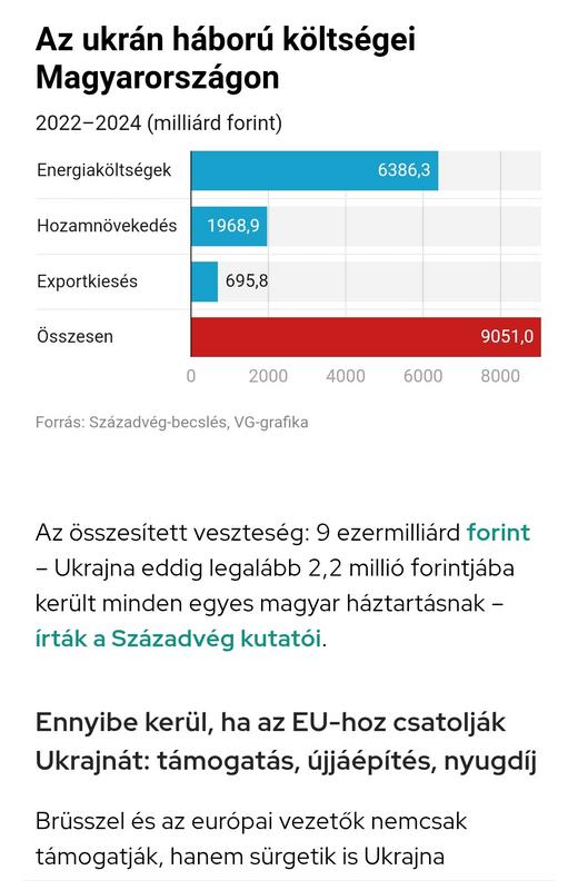 Nem számolva a nálunk élő 70ezer ukrán + milliónyi tovább menekülő költségét, és hogy a nekünk járó uniós forrásokat is a harcihörcsögnek küldték, 5000 milliárd kárt okozott nekünk az ámokfutó uki rezsim!