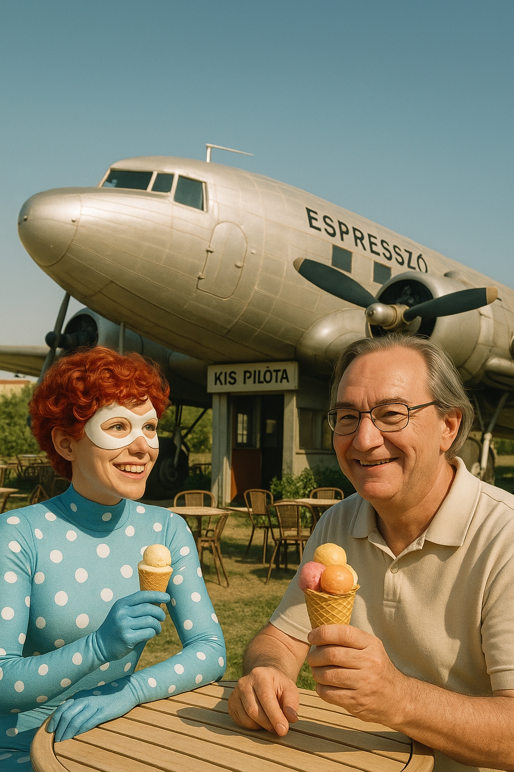 A képen én vagyok látható (mielőtt elszabadulnának a személyiségi jogi aktivisták), "virtuális szuperhős barátnőmmel", aki képes az időutazásra. A hely Budapest, Mázsa tér, az időpont 1966. április 28. Egy nappal a Kis Pilóta cukrászda leégése előtt... :-)