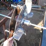 majd ezt kivágatom lézerrel, 5mm-es lemezből 6 vagy 8 példányban, és ezeket ráhúzom a fűnyíró motor tengelyére, összeragasztva