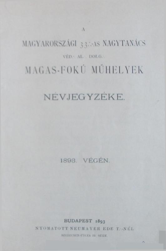 tétel 575: A Magyarországi Symbolikus Nagypáholy főhatósága alatt dolgozó szabadkőműves páholyok tagjainak névsora. Hivatalos kiadás. Kiadja a magyar királyi belügyminister.