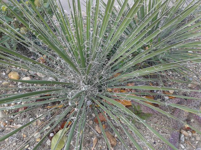 Yucca constricta, a "kunkorodó szőrű" szépség, nagyon mutatós a levélszegélyeinek a foszló, csigásan tekeredő széle, Idén nagyon bele húzott ez a két tövem: