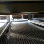 A bedeszkázott fa gerendák felett egy régi tapasztott agyag réteg van, erre kerülne a lépésálló hungarocell tábla. (Kőzetgyapot felejtős a beázás lehetősége miatt. A tető még beázhat, kisebb javításokkal szinten tartom a beázás ellen. Cseréje egyenlőre anyagi okok miatt nem megoldható.)