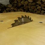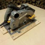 Ez inspirált, de az enyémet lehet állitani és az első vágást sem kézi pozicionálással kell csinálni. Csak neki kell támasztani a pakkot a tüskének, vagy egy távtartóval lehet fél osztással is kezdeni, ha úgy jön ki szépre a vége.