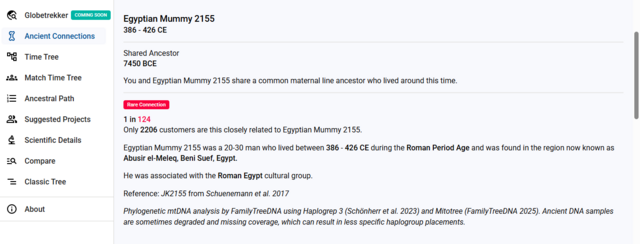 Különben érdemes megcsináltatni az FTDNA cégnél a mzfull tesztet - amikor akció van - nagyon érdekes archaikus és híres ember mintákat ad haplocsoport rokonnak, most például kaptam egy egyiptomi múmiát is, 9500 éve élt a közös ősanyánk.
