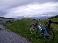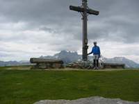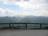 A Hochwurzen - Schladming fölött - nem egy gyaloggalopp. Pihenőszakasz nuku, végig 10-13%-os. Ráadásul az utolsó 6 km murvás. Ám olyan jó minőségű, hogy a 23*622-es gumimmal is simán abszolválható volt. (Kivi! Jól bírják a felnik is!!!)Itt 1(!) autóval találkoztam és négy gyalogtúrázóval. Mondjuk kora reggel volt. Panoráma a Grossglocknerre és a Dachtsteinre. Első osztályú hely. Ez volt egyben a csúcsom is, a maga 1852 méterével.