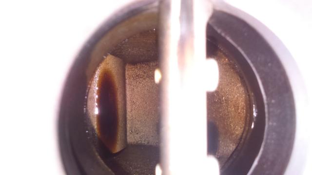 De ha esetleg valamelyik injektor átenged és be is csepegtet valamennyi üzemanyagot az a leállítás után elpárolog JA és nem barna!:-)) A fényképen ami látszik, az a koszos karter olaj maradék. Amúgy ez a rendszer is a hengerfej szívócsonkjába permetezi a benzint mert az meleg és ott "osztódik" még a benzin "nagy durranás" előtt.:-)))