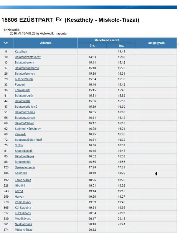 A 2 es pótlék régen a balatoni nyári közlekedést is tartalmazta, most csak a Gödöllő-Miskolc indulási adatok érhetők el, a budapesti , meg a 30 as vonali még nem!
