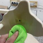 Hőlégfúvóval megmelegítettem a viaszt, hozzá az olajat, aztán kicsit a fát, és vatta becsomagolva puha rongyba, belemártva a mixbe, finoman felhordtam és amit tudtam első körben, bedörzsöltem. Aztán amint a mix megdermedt a fán -> ez elég hamar megtörténik, főleg egy fűtetlen pincében /jajj, bocs Ragasz, GÖDÖRBEN :D /, hőlégfúvóval óvatosan rásegítve beitattam amit lehetett, maradékot tiszta puha ronggyal letöröltem. Selymes fénye lett és hozzá még a nagyon jó illat is társul.