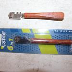 Nekem a legegyszerűbb üvegvágóm van, ezt a típus szinte mindenhol beszerezhető! Ez egy EXTOL üvegvágó amiben 6 db él van. Ha az egyik elhasználódott akkor fordítok rajta egyet és már lehet vágni a következővel. Olyan amatőrök számára mint én is vagyok teljesen megfelelő. És az ára szinte már a vicc kategóriájába sorolható. Ennek a készletnek az ára 690 Ft. Igen jól látod 690 forintért adnak egy jól kézreálló fa nyelet, amihez még 6 db üvegvágó él is tartozik. Természetesen ennyi pénzért nem lehet elvárni, hogy az élek örök életűek legyenek.