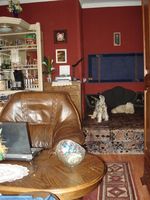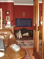 Geó mint tudod, normál méretű és egész kicsi korától hozzászokott a házikoszthoz!