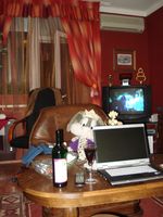 Én is megvagyok,fázom,mint egy kutya.Hozzáteszem Moha is nagyon fázik,még itt a lakásban is.Természetesen a ruhái alig jönnek rá,úgyhogy nem csak a fiaimnak kell újakat vennem ,neki is.Itt szakad az eső.