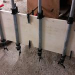 Bekened ragasztóval a fogadófelületet, a culagra teszel újságpapírt, aztán a furnért, aztán a fogadófelületet, majd megkened a felület másik felét+ furnér+újságpapírt,+culag. Ezt valahogy össze kell préseld, kézi présekkel. Mozog az egész... elcsúszik egymáson minden. Kettőnél több kezed kell legyen.