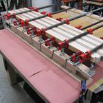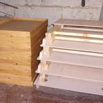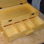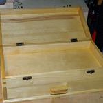 100% kézimunka kézifűrésszel, kézigyaluval, stb. Colos kőrisdeszkából indultam ki, ill. a fenéklemezek és elválasztók 4mm-es rétegelt lemezből készültek. Három réteg sellakkal kentem le.