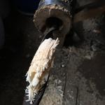 Muteromék hoztak Szarvaskőről egy szép 35 centi átmérőjű, ~50 centi hosszú 30 éve kivágott körtefa rönköt. Szép szabályos. Jót ujjongtam mikor meghozták, már láttam lelki szemeim előtt a jó nagy tányérokat amit kiesztergálok belőle. Láncossal felszeletelem, sallala, dejólesz. Megnézve közelebből, oldalán, bütü oldalon tele kis apró, szabályos lyukakkal. Mintha vékony fúróval fúrták volna őket. Valami dög biztos megrágta :-( Nem merem feltenni, franc tudja belülről mennyi ilyen vájat van, aztán az arcomba nem akarnék egy körtefa-darabot