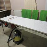 A stellert még fejleszteni kell, voltak próbálkozások, de a rögzítésnél elbukott mind. Így marad a jó öreg szorító. A csúszó asztalkát az asztalba süllyesztett alu U profil vezeti, hibátlanul működik. Az elszívást én így oldottam meg alulról. A hungarocell a zajcsillapítás miatt került bele. valamennyit jelent is. Egy Lidl-ös száraz nedves porszívó intézi a porelszívást, tervben van egy forgácsleválasztó, de hely szűke miatt még gondolkozom rajta, hogy is kellene. Jól működik ez is, bár a porszívót és a szűrőzsákját sűrűbben kell takarítani.