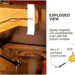 A lyuk körűl nem fog megragadni. Csinálj egy pontos dugót bele és majd a végén kivágod. De nehéz kicsíszolni szépen. Furnérból van o.5-ös, o.6-os és o.9-es. Talán a o.9-es megragad a lyuk körül is.