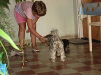 Gina: Igen a beiskolázás tényleg rengeteg pénzt elemészt, pedig csak 1 gyerekem van. Nekem a fiam Ausztriába jár suliba, és aminek nagyon örülök a tankönny csak jelképes összeg alig 7-9 euró de a drágább könyveit (lexikon, térkép stb.) nem tarthatja, meg mert a következő osztály majd újra használhatja. Az Ausztriához hozzászólva annyi, hogy a vendégeim lába mellett ül a kutyus végig, míg dolgozom. Pedig nagyon szigorú higiéniás feltételeket szabnak nekünk a kutyus, viszont nincs a szalonból kitiltva: )) szinte minden étterembe bevihetem és még külön tálkát is gyakran kap amibe ihat. Zsebi: Gratulálok ügyik vagytok!!! Kész vagyok attól a képtől, ahol indultok először olyan tündérien, néz rád! Említetted a gyerek kutya témát. Sosem felejtem el, amikor először mentünk a Metróba itthon a fiamat nem engedték be szörnyen felháborítónak tartottam akkor. Kérdeztem hová tegyem??!! Hát nem mentünk vásárolni. Kérdeztem, hogy ha vállalom érte a felelősséget, kit zavart volna? Ezek után a kutyáról már hiába is beszélünk: ((pedig ott is van gazdi, aki figyel rá!!!Angelyorki: neked elfelejtettem még megköszönni egy régebbi hsz.-etJanik: A fehér ruhás nő .jót röhögtem. Persze én elájultam volna!Yorkshiere: Jól emlékszem Csillagra. Annyira látni, hogy jó sora lett majd közben még tehetnél fel pár képet róla.Kicsit irigylem a másik fórumon a Zsebi ötleteit, itt is jó lenne, ha megpakolnánk az oldalakat fényképekkel. Nem? Én imádom nézegetni a kutyukat Na jóccakát mindenkinek: Inobaba*Macika