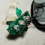 Rövidre vágtam a lábait, és vékony szilikon szigetelésű drótokkal kötöttem be. Ezek biztosan nem képesek kHz tartományban rezegni. A csövet betekertem speciális, rezgéscsillapításra gyártott, 5mm vastag géllel. Ezzel elértem, hogy kizárólag akkor lépett fel rezgés, ha magát a csövet kocogtattam, az asztalt erősen megütve se volt jel.