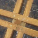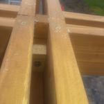 Az egyik irányban feltett párosfogóból ki kell vágni 12x5-et, az fut alul, a rá merőleges irányba is ugyanannyit csak azt rá át kell forgatni. A hónajkötés 7x14-es, és be van vállazva a két párosfogó közé, az oszloppal egy csapfészekkel csatlakozik.