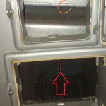 Látom, nem úszom meg a fotózást, előbb utóbb meglesz.. :) De ez nem primer levegő torlólemez, hanem tüzelőanyag megtámasztó lemez, hogy ne boruljon rá a rakat az alsó ajtóra. És nagyon vékonyan van perforálva, de így is átmegy rajta némi primer levegő adott esetben.